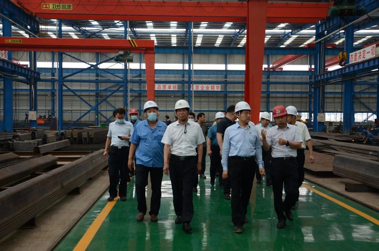 總經(jīng)理金躍山向劉宛康市長介紹了河南六建鋼結(jié)構(gòu)裝配式產(chǎn)業(yè)園區(qū)的建設(shè)生產(chǎn)情況。劉宛康市長一行先后參觀了鋼橋梁生產(chǎn)線預(yù)處理車間、單元件車間、總拼車間,并詳細了解了公司的產(chǎn)品優(yōu)勢、技術(shù)創(chuàng)新、市場發(fā)展前景等。